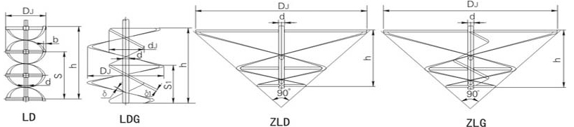 螺帶式-LD、錐底螺帶式-ZLD、螺帶螺桿式-LDG、錐底螺帶螺桿式-ZLG