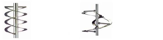 此類攪拌器為慢速型攪拌器,常在層流區(qū)操作,液體沿著螺旋面上升或下降形成軸向的上下循環(huán),適用于中高粘度液體的混合和傳熱等過程。常用介質(zhì)粘度μ<105cP,常用轉(zhuǎn)速n=0.5-50rpm,v=2m/s。LD螺帶式攪拌器的螺帶外廊接近于攪槽內(nèi)壁,攪拌直徑大,強(qiáng)化了進(jìn)罐壁的液體的上下循環(huán),高粘度液體的傳熱過程很適用。LDG螺帶螺桿組合式,同時(shí)具有螺桿和螺帶的特性,強(qiáng)化了液體內(nèi)外圍的循環(huán),特別對(duì)非牛頓型似塑性及粘彈性液體有效。ZLD錐底螺帶型,ZLG錐底螺帶螺桿型,其特點(diǎn)是底形可和錐形釜底相配,可按要求設(shè)計(jì)。