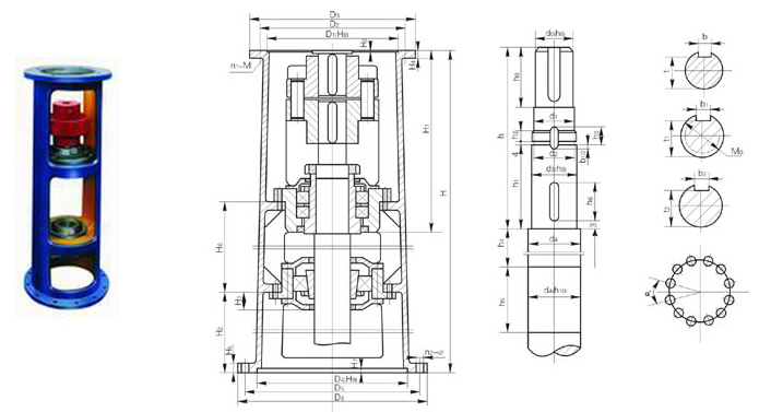注:圖示所注“h”僅與本樣本BLD、LC-Ⅱ、DC-Ⅱ系列減速機相配,如選用其他型號或其他廠家減速機,“h”需另行計算。增高后的LSJ型機架其下部空間高度可容納205、206或207型雙端面機械密封。