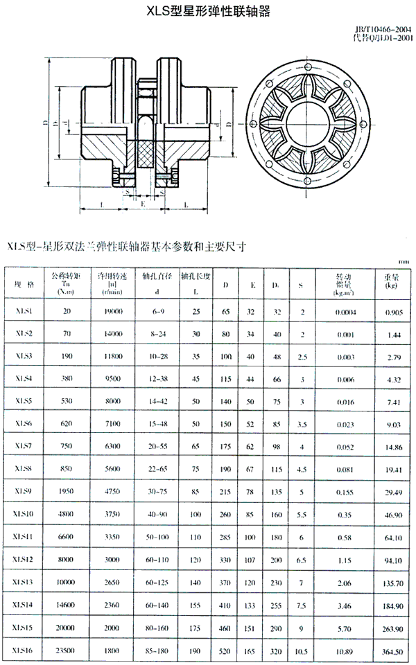 XLS型星形雙法蘭彈性聯(lián)軸器(JB/T 10466-2004)