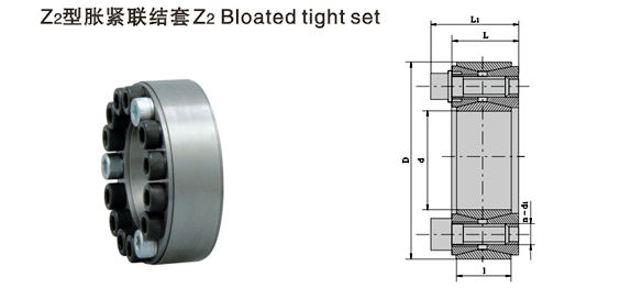特性:Z2型脹緊套由一個開口的雙錐內(nèi)環(huán),一個開口的雙錐外環(huán)和兩個雙錐壓緊環(huán)組成。用內(nèi)六角螺栓擰緊,擰緊時彈性環(huán)沒有相對于軸轂的軸向移動,與Z1型比較,同樣壓緊力能產(chǎn)生更大的徑向壓力,傳遞更大的載荷。為便于拆卸,在一個壓緊環(huán)上有拆卸用螺孔,沿圓周共有2~4處。鎖緊聯(lián)結(jié)盤廣泛應(yīng)用于包裝、印刷、紡織、機床等機械上。