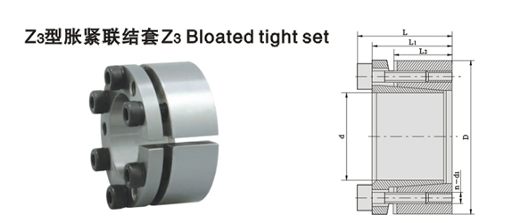特性: Z3型脹緊內(nèi)外錐環(huán)用內(nèi)六角螺栓擰緊,能傳遞較大載荷,并且一個(gè)錐環(huán)上有拆卸螺紋孔;Z3型結(jié)合面較長(zhǎng),對(duì)中性好,適用于旋轉(zhuǎn)精度要求較高和傳遞大載荷的場(chǎng)合。